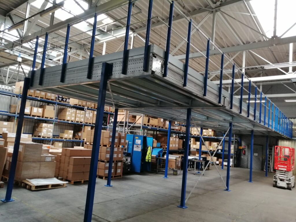 Plancher mezzanine compact de 93 m² améliore le stockage et l’organisation des petites pièces dans l’industrie automobile