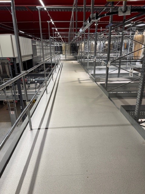 Un plancher mezzanine de 2 700 m² créant un système de stockage efficace et peu encombrant pour la logistique de la mode