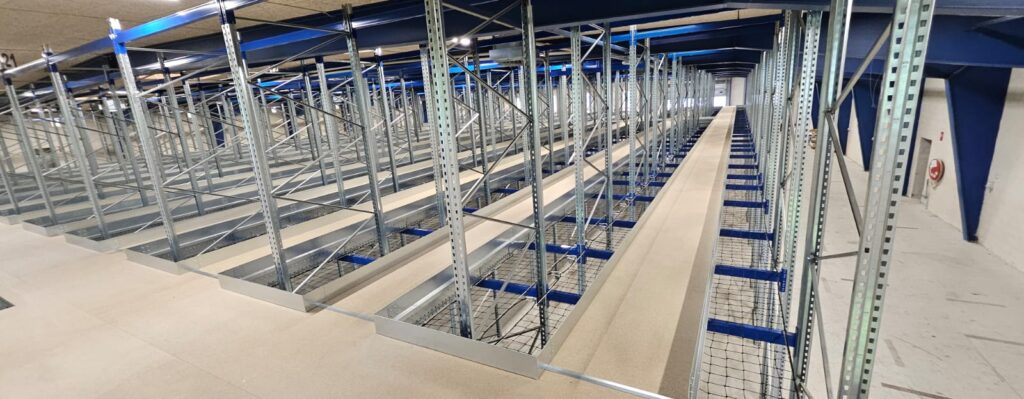 Pour Designer Outlet DK Company A/S, Nolte Mezzanine a réalisé un plancher mezzanine combiné à des rayonnages à palettes. Cette configuration intelligente crée un système de stockage semi-automatisé qui triple la surface disponible. La solution apporte non seulement une capacité supplémentaire, mais améliore également la rapidité, la visibilité et l’accessibilité du processus logistique.
