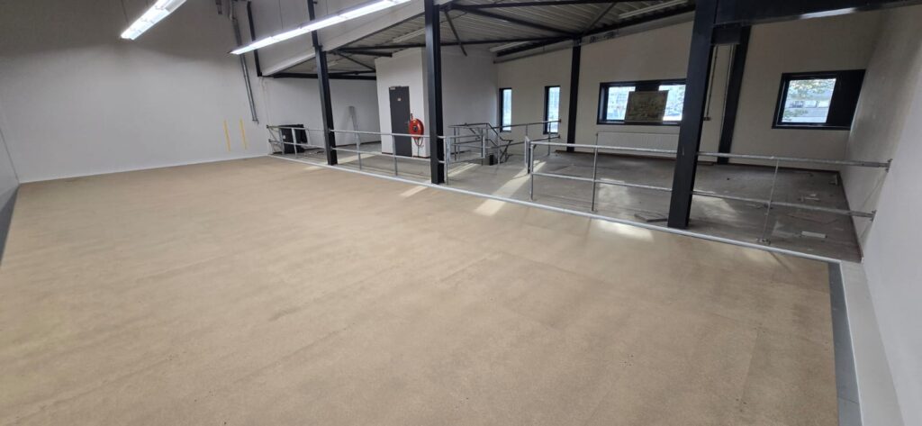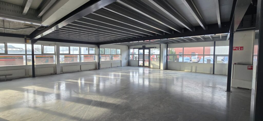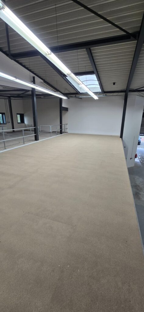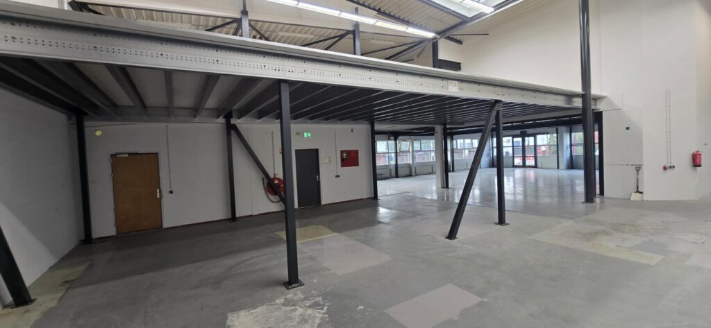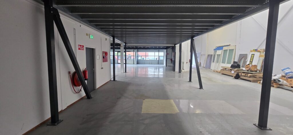 Un plancher d’entresol à un niveau de 250 m² qui crée un espace de stockage supplémentaire et intègre des fonctions de bureau dans le bâtiment existant