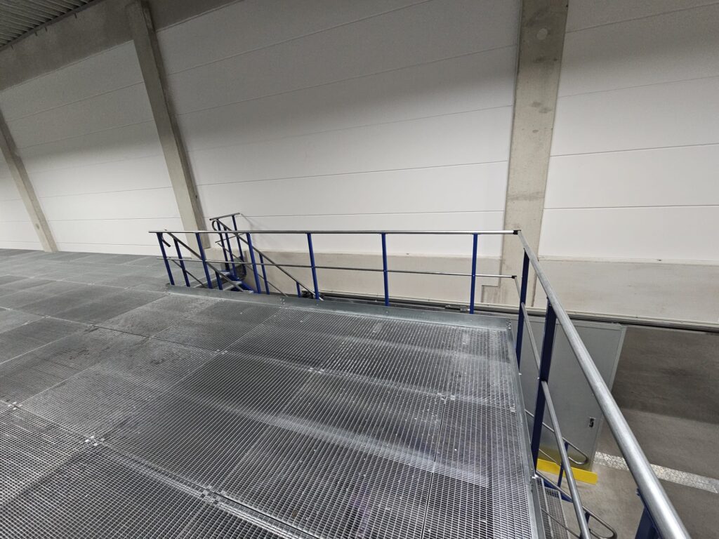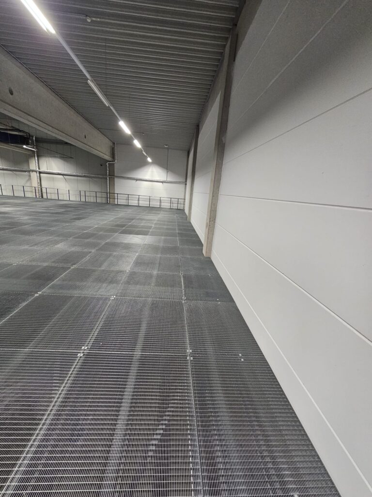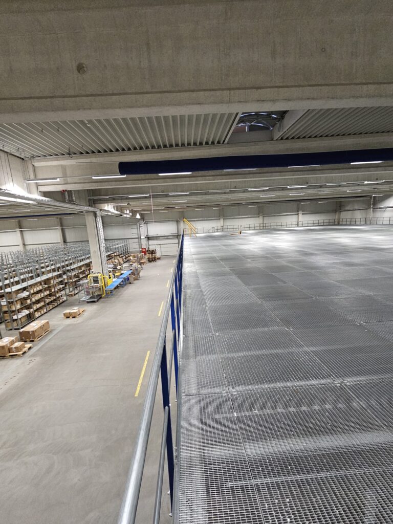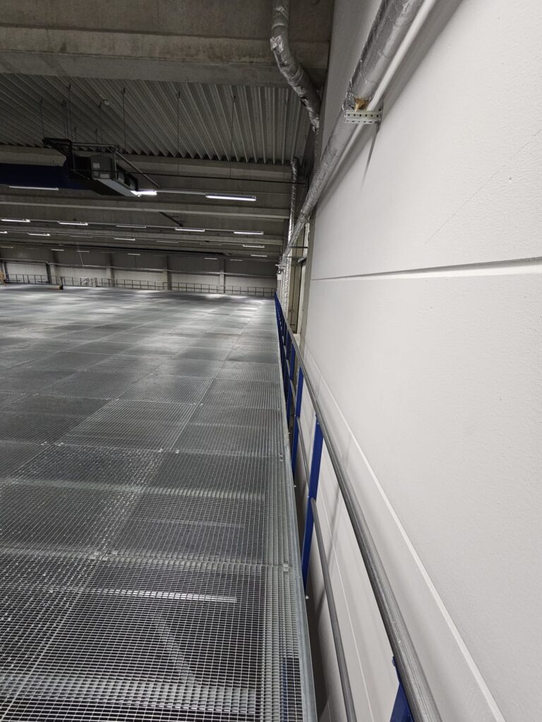 Installé à +3 700 mm et stabilisé par des contreventements en croix, le plancher mezzanine garantit une sécurité et une durabilité maximales. Le plancher en caillebotis assure une excellente circulation de l’air, indispensable pour les environnements logistiques médicaux. Conçu pour le stockage et le picking, il associe solidité, fonctionnalité et facilité d’entretien.