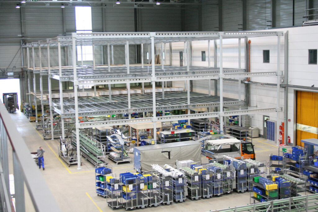 Pour LTS Nordwest GmbH, Nolte Mezzanine a réalisé un plancher mezzanine de haute qualité avec trois niveaux, pour une surface totale de 2 956 m². Grâce à l’utilisation de profils en acier laminés à froid et à une construction de toit intégrée pour le système de sprinklers, la mezzanine répond aux normes strictes de sécurité de l’industrie aéronautique. La solution permet de stocker et de prélever manuellement des composants d’avion, tout en laissant le rez-de-chaussée largement libre pour les grandes pièces.